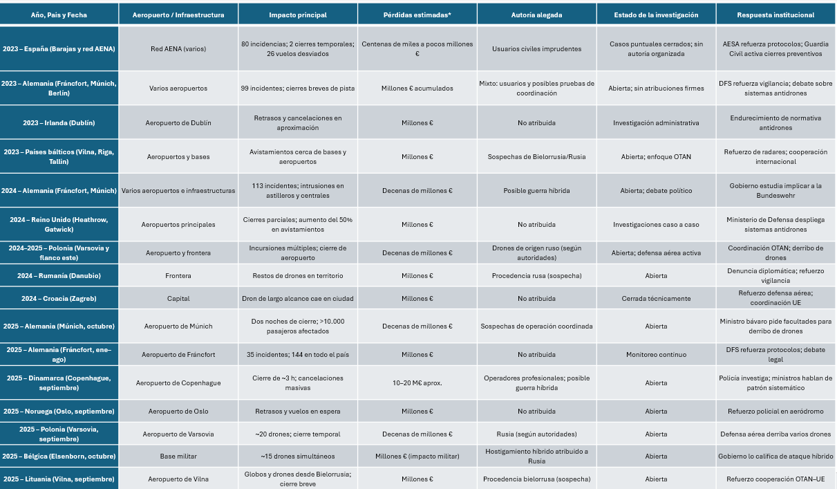 📊 Incidentes con drones en Europa (2023–2025)